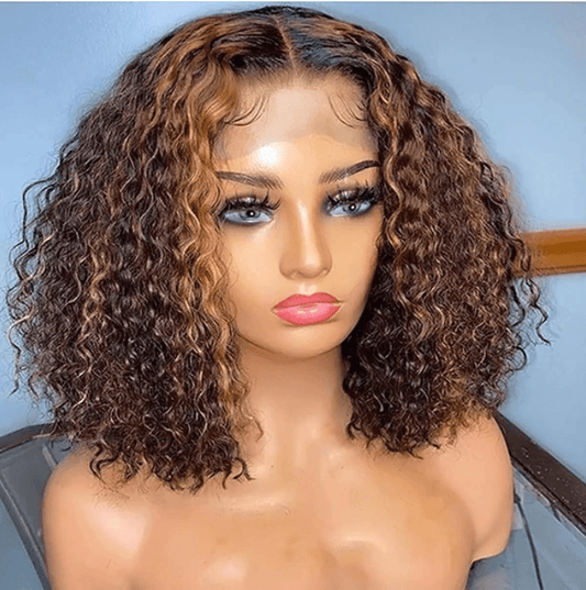 Honey Blonde Short Curly Bob Wig 13x6x1 Lace Part Human Hair Wig