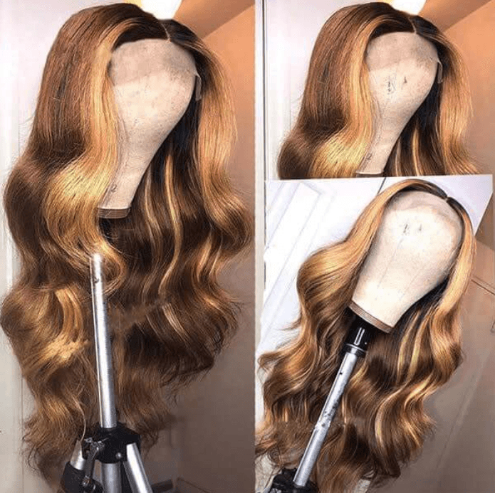 Item: Honey Blonde Ombre Body Wave Hair 13*4 Transparent Lace Front Human Hair Wigs Pre Plucked