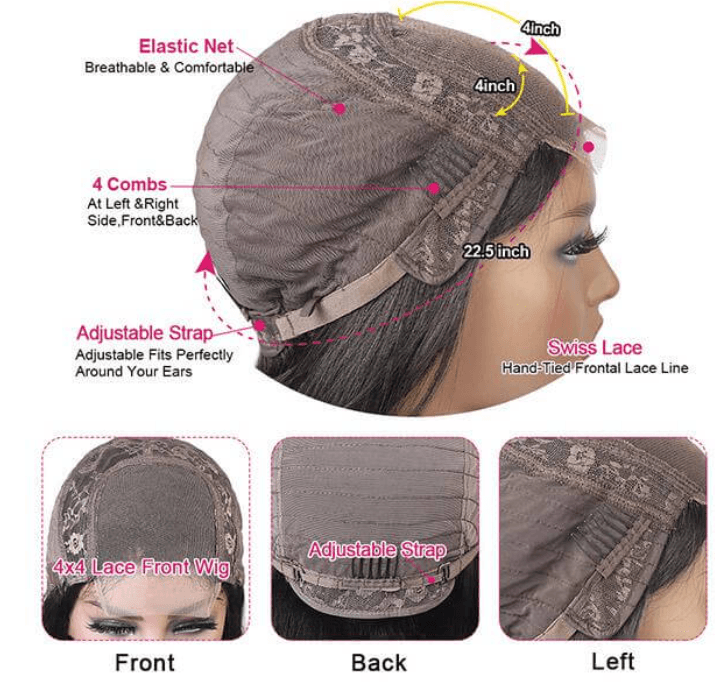 Lace Net: 4*4 Lace Closure Wig, P4/27 Color, Pre-plucked with Baby Hair, Natural Hairline