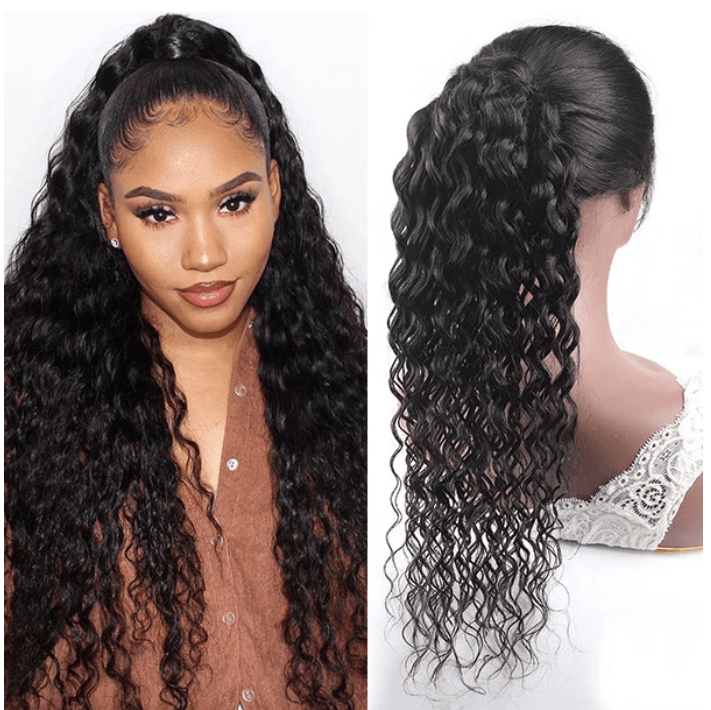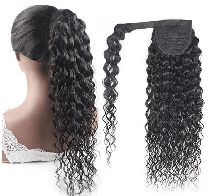 Item: Water Wave Human Hair Wrap Around Clip In Ponytail Hair Extension