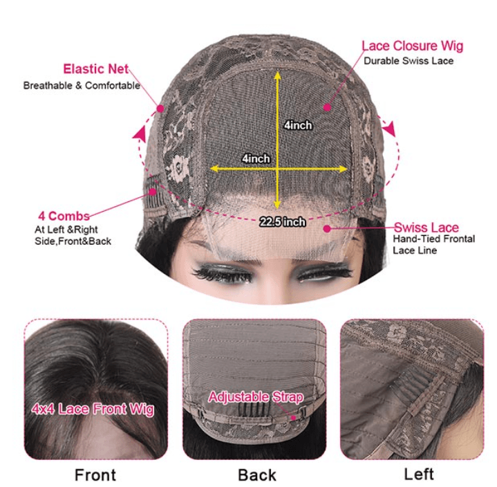 Pack: 1 Piece Water Wave Hair 4*4 Lace Closure Wig/1 Wig Cap in the box